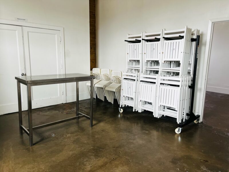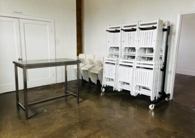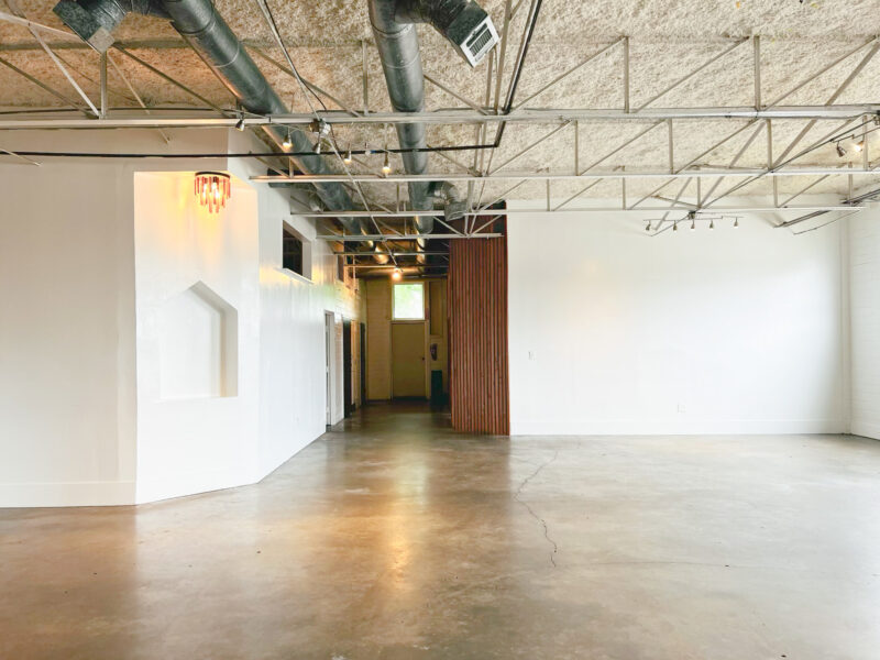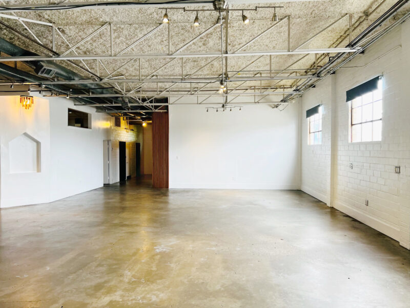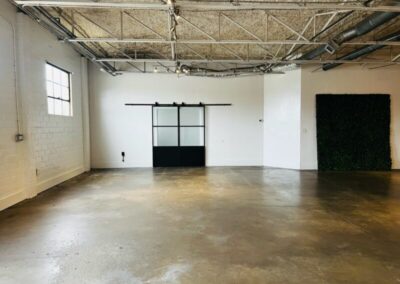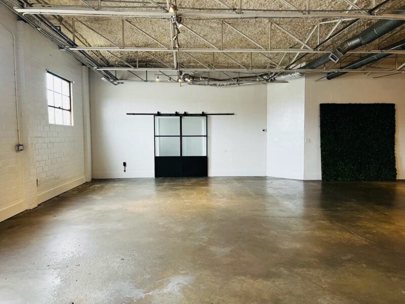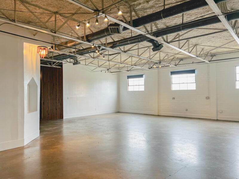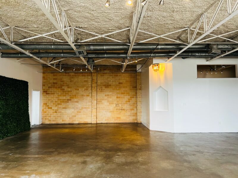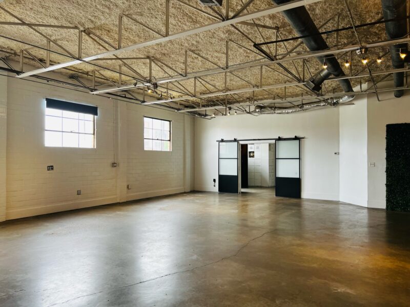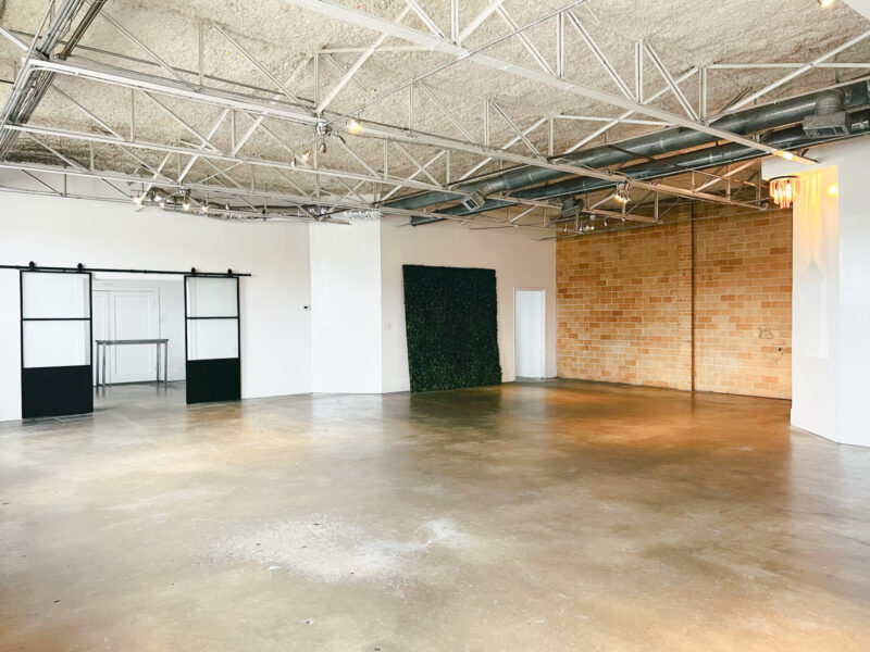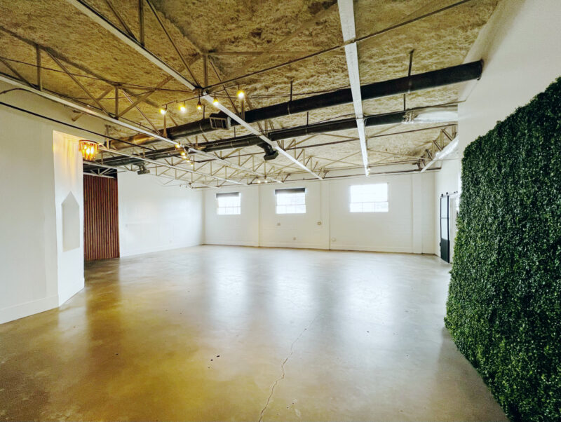 Our Blank Canvas Warehouse is our original location. White wall simplicity makes it fresh and ready… Go as-is for artsy events or Splash your own lights, color, and cloth for a complete up do. You can do just about anything with this space.